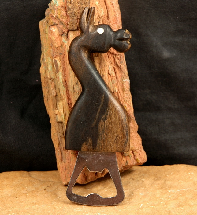 Hier sehen Sie einen schönen, handgeschnitzten Flaschenöffner / Bieröffner aus Ebenholz mit einem Giraffen Motiv.