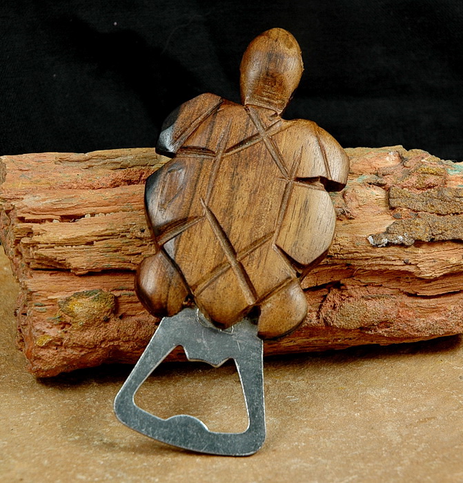 Hier sehen Sie einen schönen, handgeschnitzten Flaschenöffner / Bieröffner aus Ebenholz mit einer Schildkröte als Motiv.