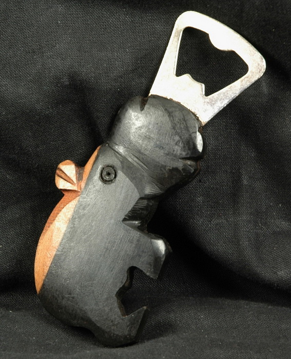 Schöner, ausgefallener Bieröffner / Flaschenöffner aus Holz geschnitzt