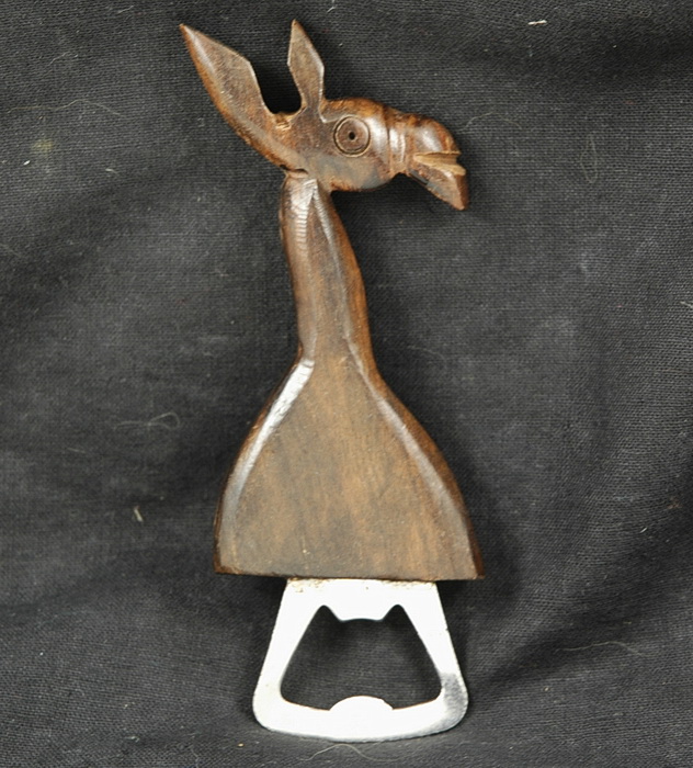 Hier sehen Sie einen schönen, handgeschnitzten Flaschenöffner / Bieröffner aus Ebenholz mit einem Giraffen Motiv.