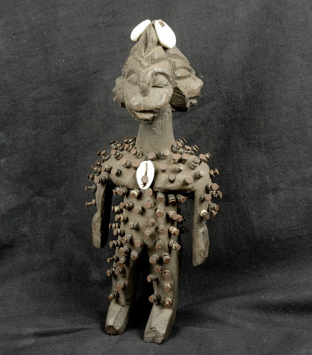 Afrika Holz Figur - Afrika Nagel Fetisch - Ritual Figur