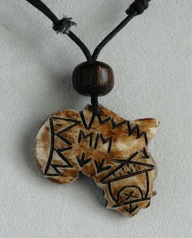 Hier wird eine Afrika Kette mit geschnitztem Anhänger angeboten..