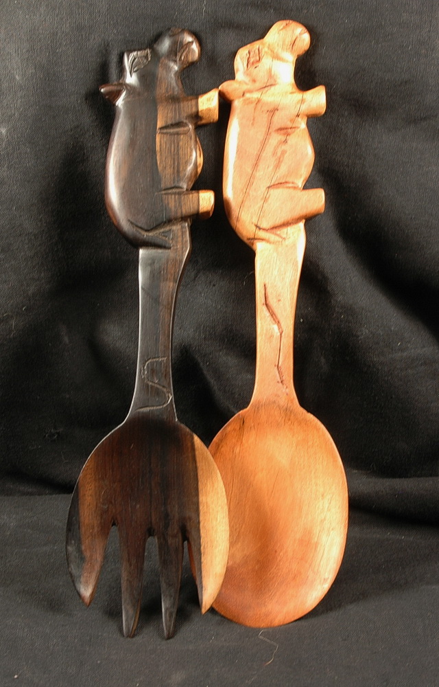 Holzschnitzarbeit aus Afrika - Salatbesteck - Nilpferd / Flusspferd