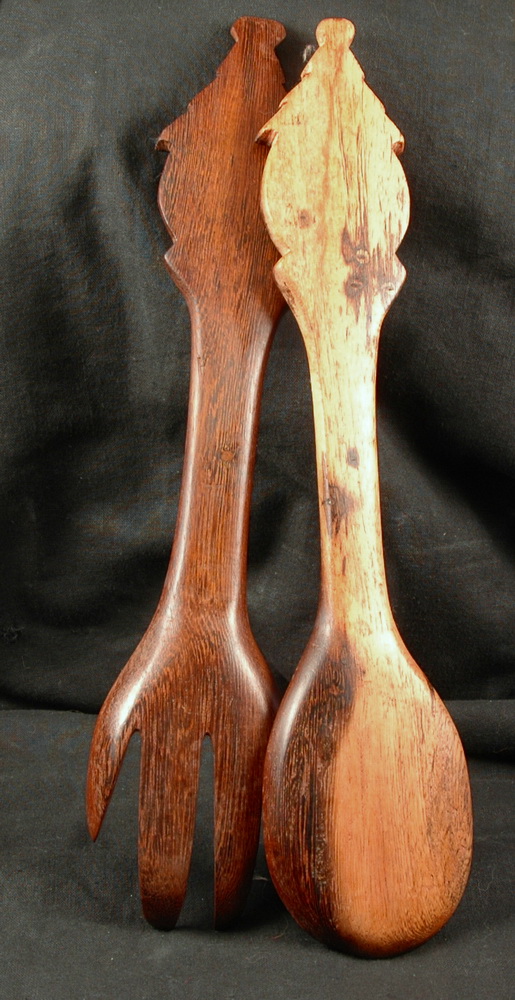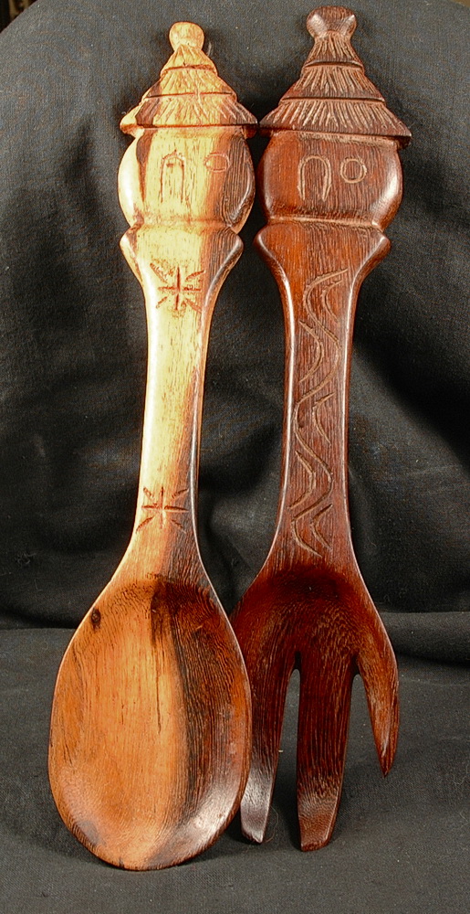 Holzschnitzarbeit aus Afrika - Salatbesteck - Hütte