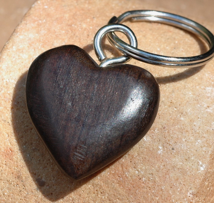 Jeder kleine Schlüsselanhänger ist in Handarbeit gefertigt und wirkt durch die eigene Schönheit und Maserung des Ebenholzes.