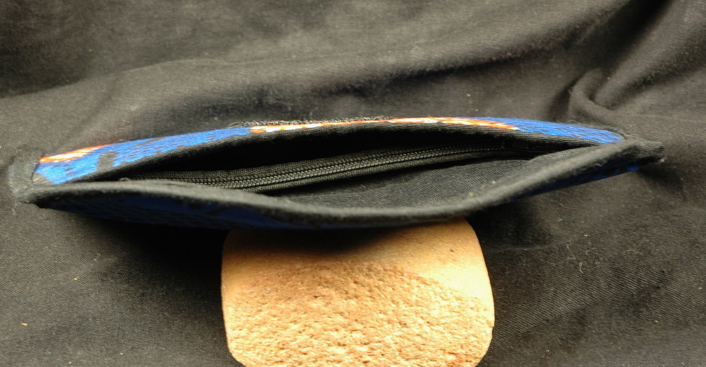 Sie ist aus afrikanischem Baumwollstoff hergestellt, innen gefüttert und hat hinten und innen eine Tasche, die mit Reißverschluß geschlossen wird.