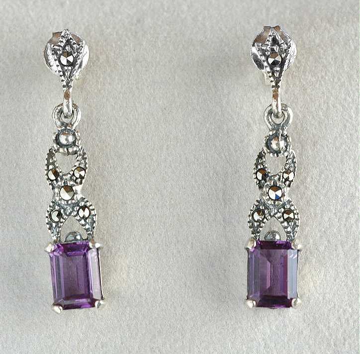 Dekorative Markasit Silber Ohrringe / Ohrhänger - Amethyst