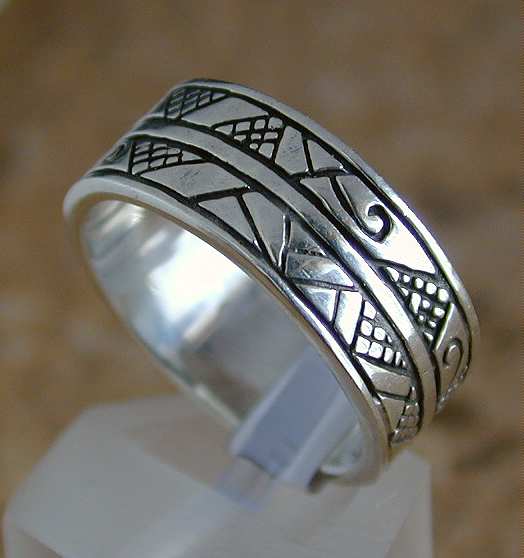 Sie sehen hier einen schön gearbeiteten Ring aus massivem Silber, mit einem schönen Muster.