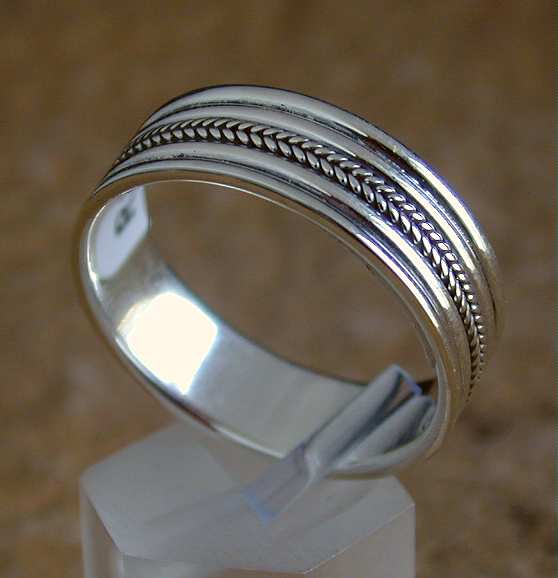 Sie sehen hier einen schön gearbeiteten Ring aus massivem Silber, mit einem schönen Kettenmuster.