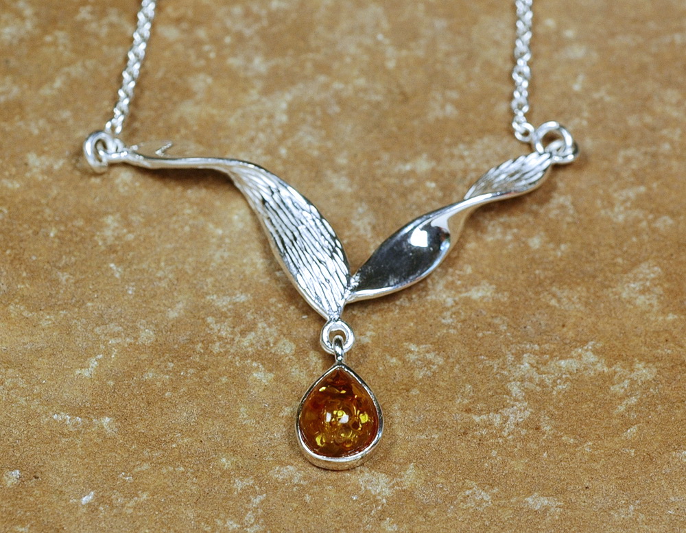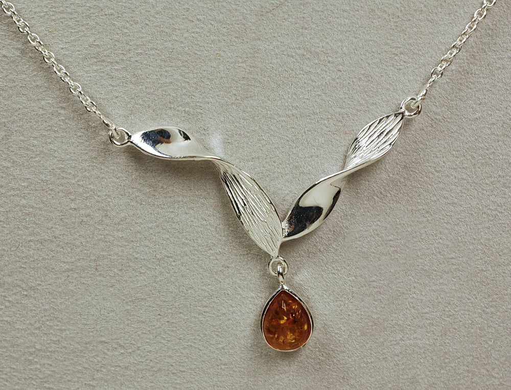 Highlight ist die Kombination von glänzendem und strukturierten Silber, in der Mitte ein schöner Bernstein.