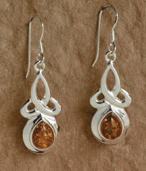 Dekorative Silber Ohrhänger / Ohrringe - Bernstein
