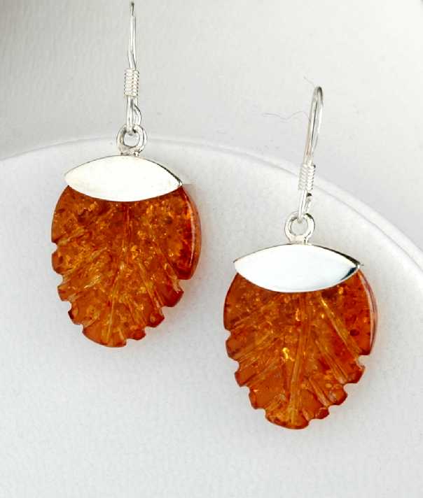 Dekorative Silber Ohrringe / Ohrhänger - Bernstein in Blattform