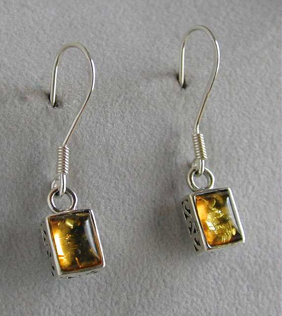 Dekorative Silber Ohrringe / Ohrhänger - Bernstein