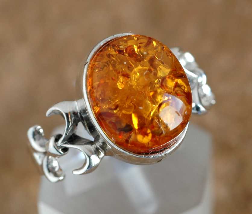 Hier sehen Sie einen ausgefallenen Bernstein Ring, ein tolles Schmuckstück!