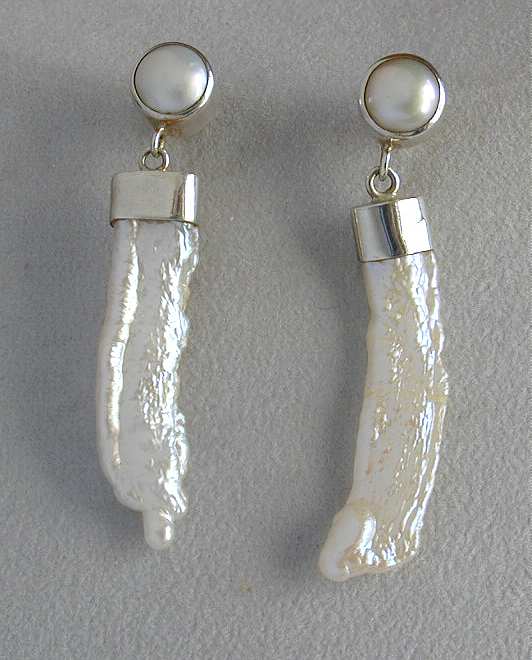 Extravagante Silber Ohrringe / Ohrhänger - Biwa Perle mit Zuchtperle