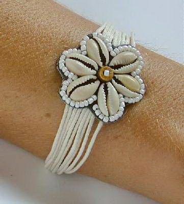 Dekoratives Blüten Armband mit Kauri Muscheln in Natur Weiß
