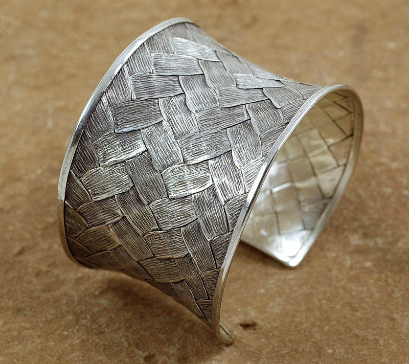 Eine wunderschöne, handgearbeitete Silber Armspange mit Flechtmuster