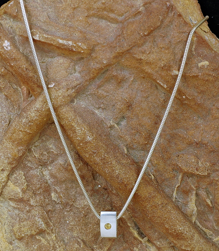 Dieser Anhänger ist modern schlicht aus mattiertem Silber handgearbeitet, als Highligt dient der schöne Citrin.