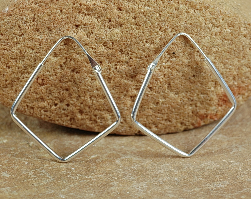 Creolen aus Silber 925 - Schmal und Viereck Form - 34 mm