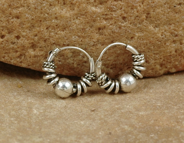 Klassische Creolen mit schönem Muster & Kugel - Ohrringe aus Silber 925