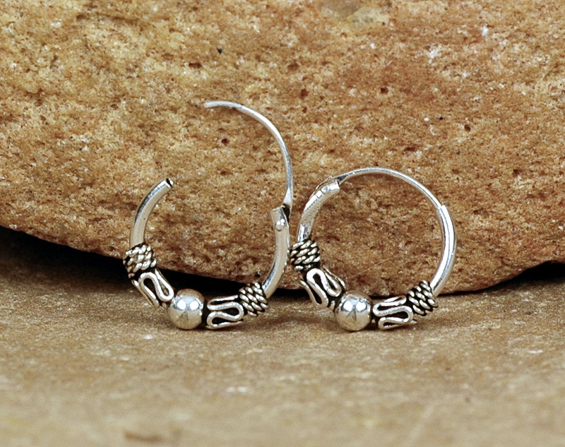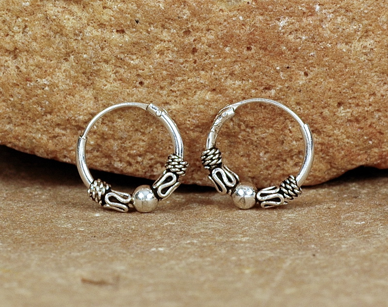 Klassische Creolen mit schönem Muster & Kugel - Ohrringe aus Silber 925