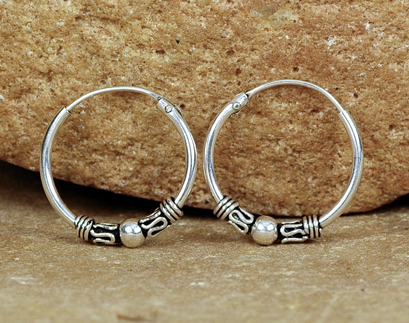 Klassische Creolen mit schönem Muster & Kugel - Ohrringe aus Silber 925