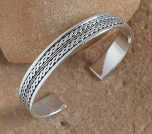 Dekorativer Silber Armreif / Armspange - tolles Muster