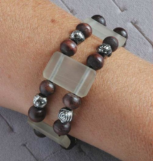 Angeboten wird hier eine schöne Kombination von Acryl und Holzperlen, gefädelt mit elastischem Gummiband.