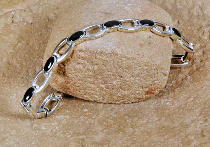 Bei diesem Modell ist der Onyx schlicht gefasst, dadurch kommen bei dem schönen Armband die schwarzen Steine voll zur Geltung.