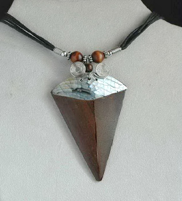 Hier finden Sie eine Kette mit dekorativem, ausgefallenen Holz Anhänger.