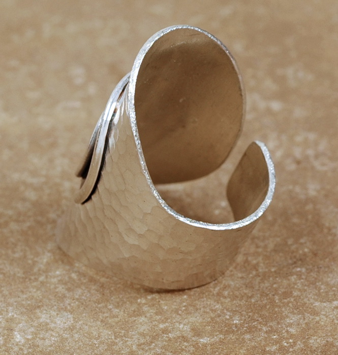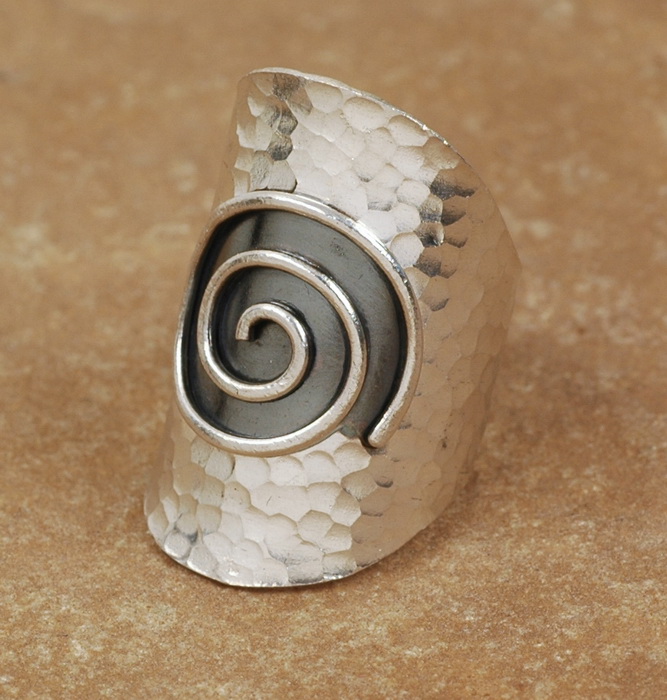 Extravaganter Silber Ring mit Spirale - Hammerschlag Design