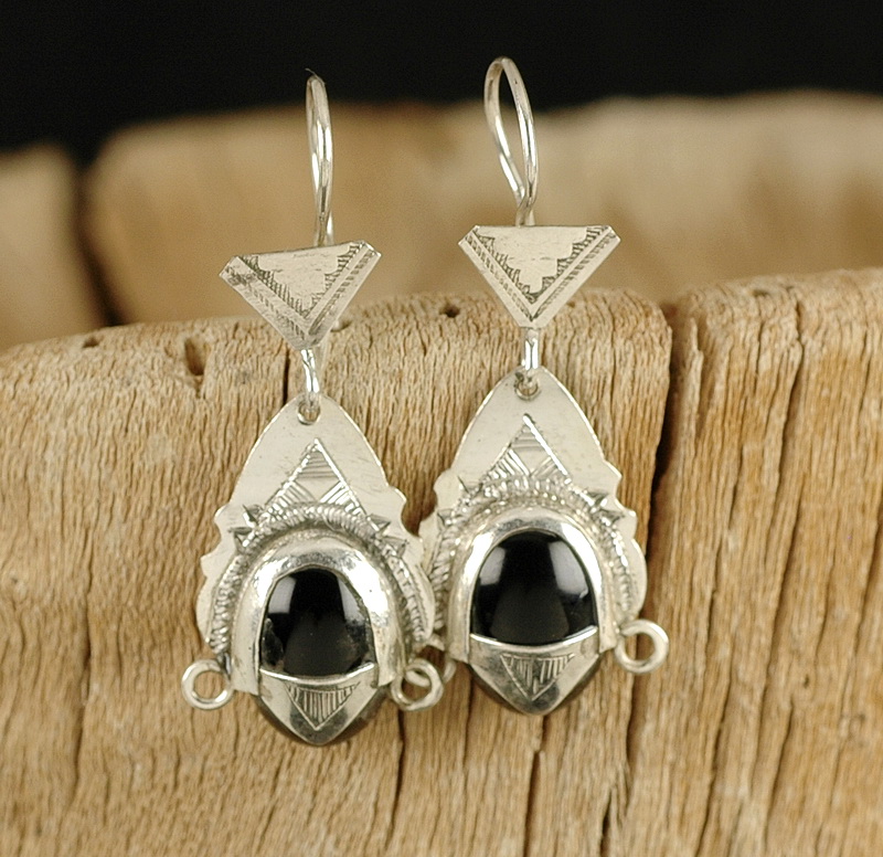 Filigrane Tuareg Ohrringe - Silber mit schwarzem Onyx
