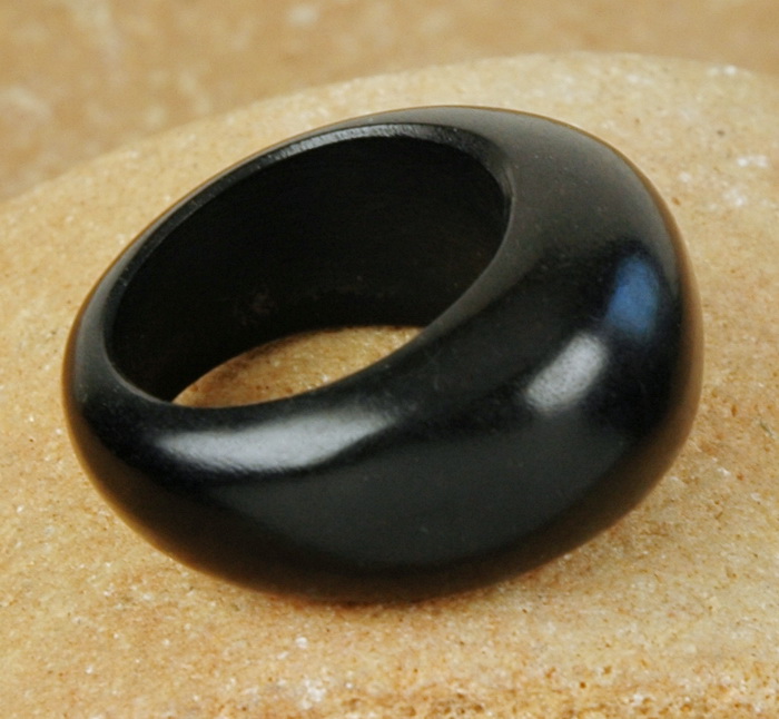 Hier wird ein aus Ebenholz geschnitzter Afrika Ring angeboten. Jeder ausgefallene Afrika Holz Fingerring ist in Handarbeit gefertigt und wirkt durch die eigene Schönheit und Maserung der Natur Materialien.