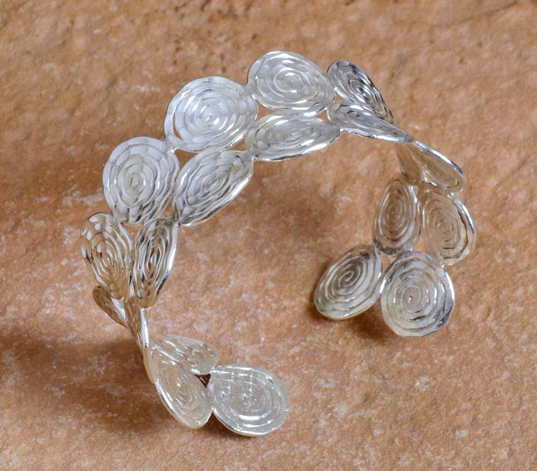 Dekorative Silber Armspange mit schönem Spiral Muster
