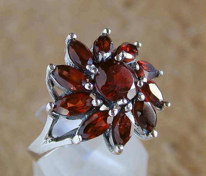 Dieses auffallende Modell ist mit schön geschliffenenen Granaten in unterschiedlichen Größen aufwendig handgefertigt.