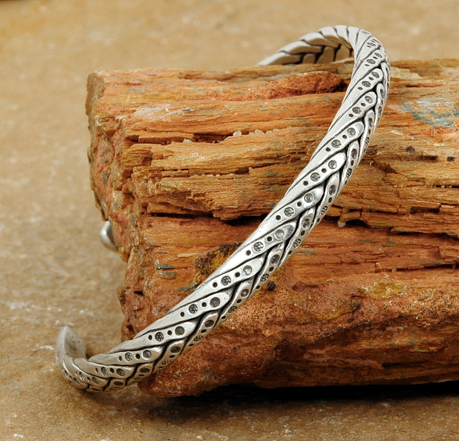 Der Tuareg Armreif ist schwer & massiv aus Silber gearbeitet und fällt durch seine aufwendige Flechtarbeit in der Mitte und sein schönes Muster ins Auge. Sie können die Armspange sorgsam auf die gewünschte Größe biegen.