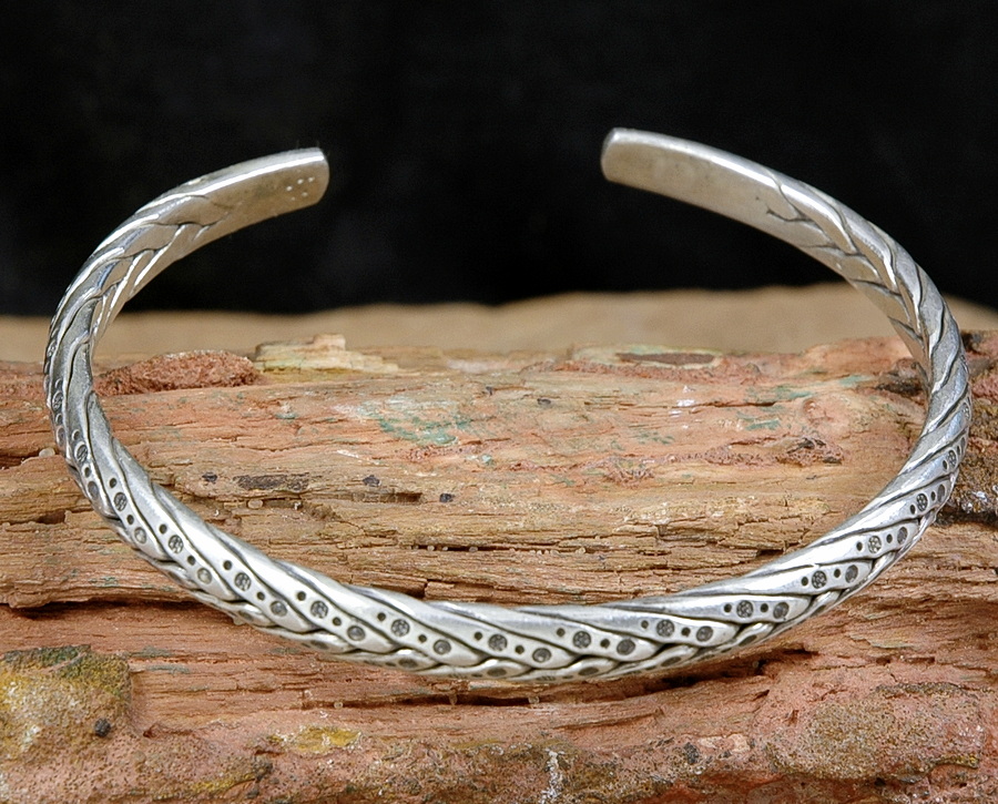 Dabei gibt es verschiedene Methoden zur Herstellung der Armreifen. Die breiten Armspangen werden aus gehämmertem Blech gearbeitet, die schmaleren mit dem Gußverfahren. Bei beiden Herstellungsverfahren härtet das weiche sehr reine Silber durch das Hämmern aus.