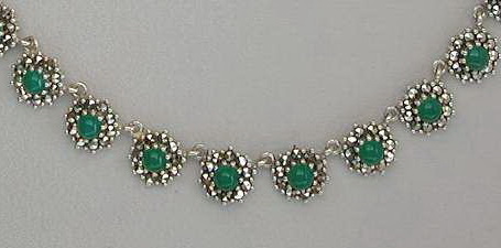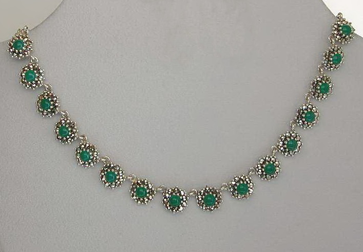 Dieses Modell ist sehr aufwendig mit Markasit Steinen und Grünem Achat gearbeitet, so kommt die schöne Kombination voll zur Geltung.