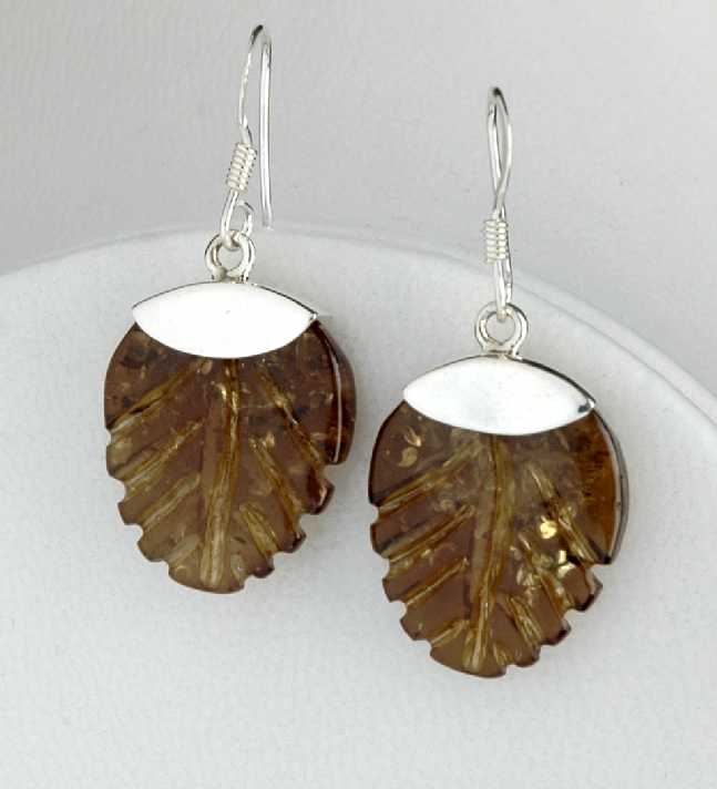 Dieses Modell ist ausgefallen gearbeitet, der schöne Bernstein wurde in Blattform geschnitzt.