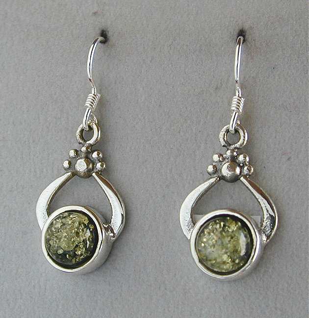 Dekorative Silber Ohrhänger / Ohrringe - Grüner Bernstein