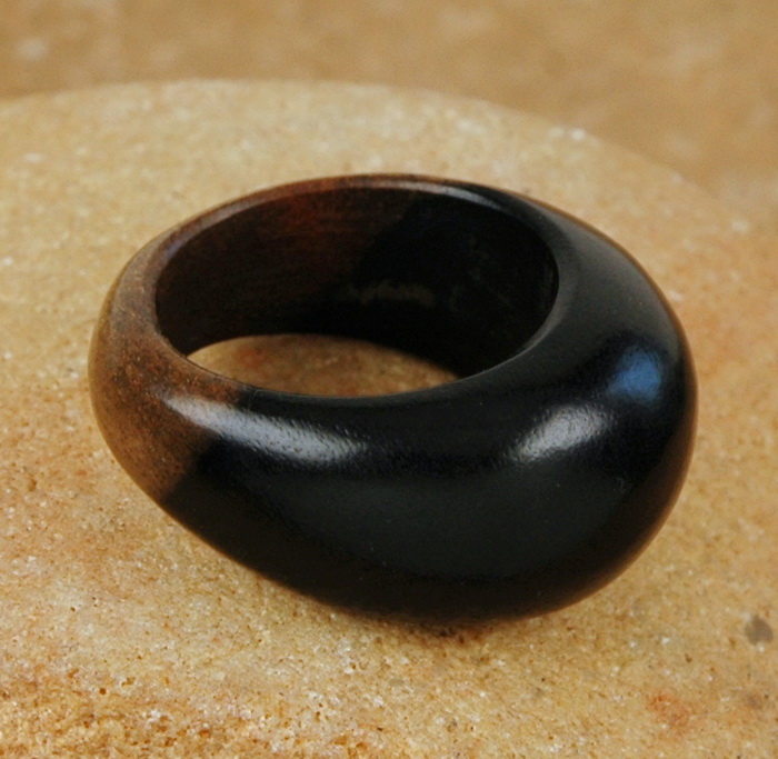 Hier wird ein aus Ebenholz geschnitzter Afrika Ring angeboten. Jeder ausgefallene Afrika Holz Fingerring ist in Handarbeit gefertigt und wirkt durch die eigene Schönheit und Maserung der Natur Materialien.