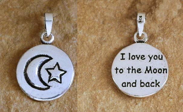 Ausgefallener Silber Anhänger - " I love you to the moon and back "