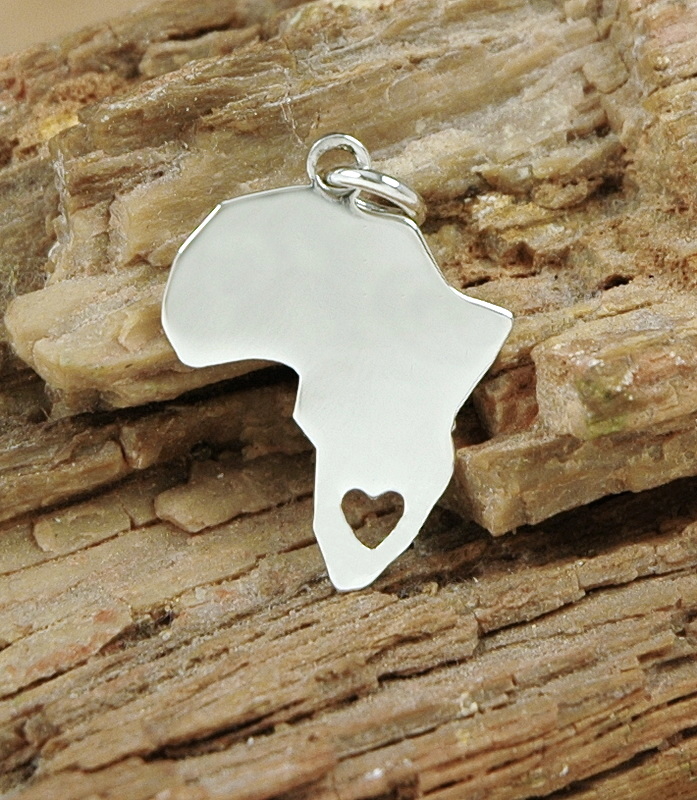 Dieser schöne - Afrika Kontinent - Ketten Anhänger ist aus glänzendem Silber 925 gefertigt, in der Form des Kontinents mit einem kleinen Herz.