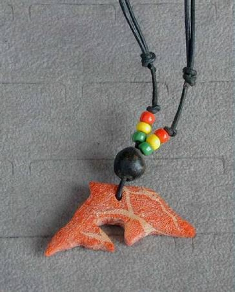 Dekorativer Afrika Schmuck - Kette mit Korallen Anhänger - Delfin