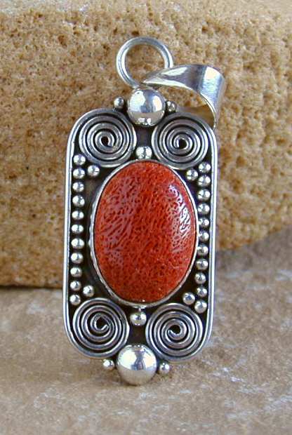 Dieses Modell ist mit roter Schaumkoralle und einer wunderschönen, aufwendigen Silberarbeit gefertigt.
