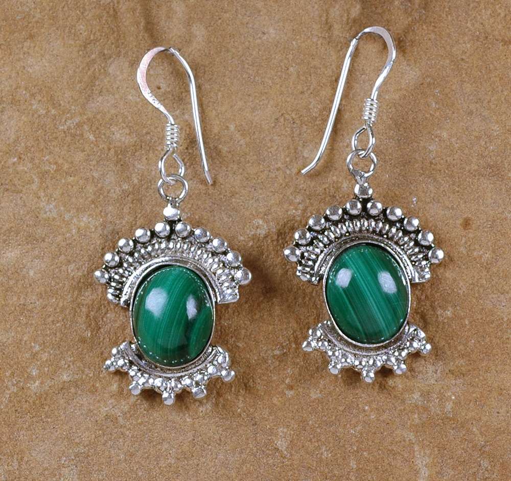 Dieses Modell ist filigran gearbeitet, so kommt die Kombination von schönem Malachit mit Silber voll zur Geltung.