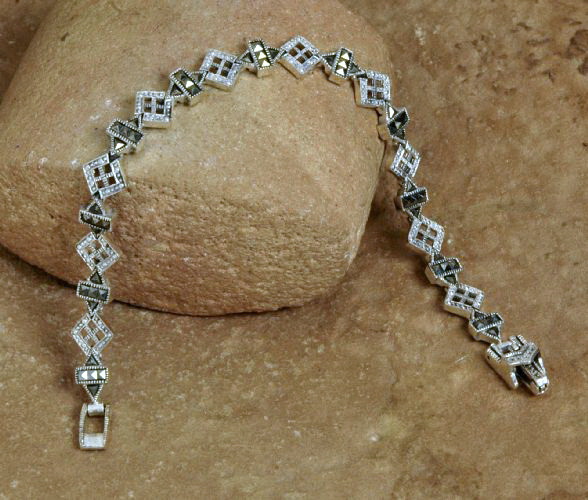 Dekoratives, filigranes Silber Armband 925 mit Markasit Steinen