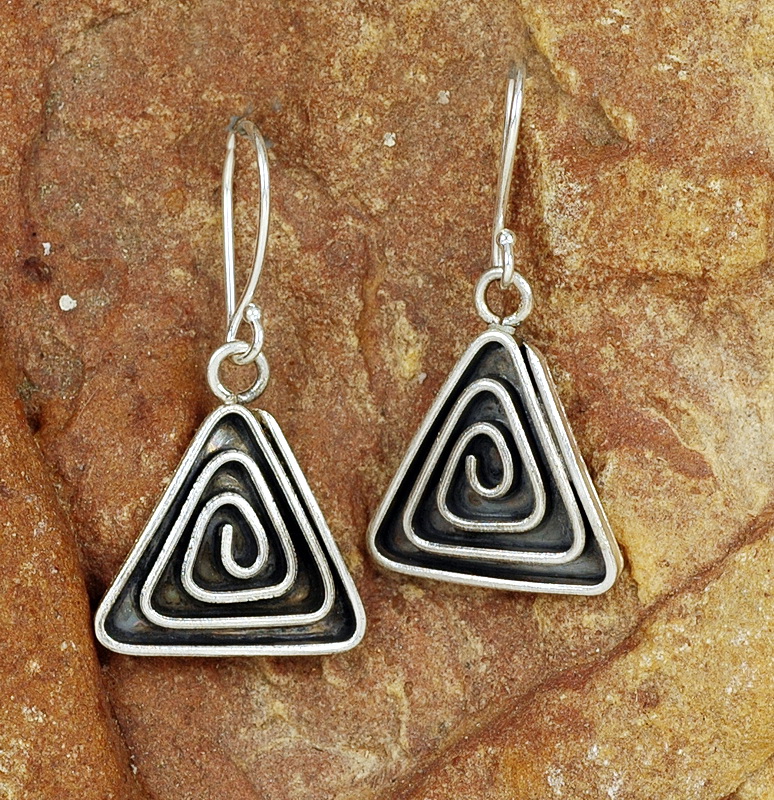 Handgefertigte Silber Ohrhänger / Ohrringe - Spirale im Dreieck