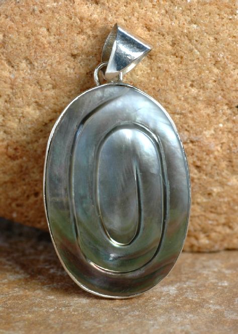 Dieses Modell ist mit einer schillernden Muschel und modern schlichter Silberarbeit gefertigt, in der Kombination kommt die schöne Muschel voll zur Geltung.