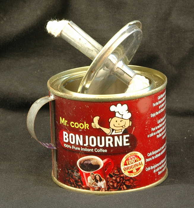 Afrika Recycling aus Blech - Öllampe aus alter Kaffee Dose